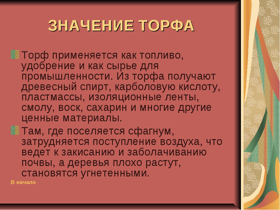 Он распадается, образуя торфяную почву, которую легче собирать и которая меньше разлагается, чем та, что находится глубже в болотах. После сбора и сушки мох сфагновый торф становится светлого цвета и может удерживать в воде в 10-12 раз больше собственного веса. .Не путайте мох сфагнум торф с мохом сфагнумом (хотя их названия очень похожи). Мох сфагнум относится к растительному материалу, который собирают, когда он еще жив и растет над водой. Конечный продукт представляет собой легкий волокнистый материал, который часто используется для декоративной облицовки проволочных корзин.