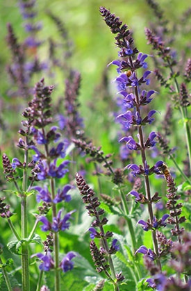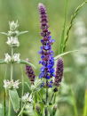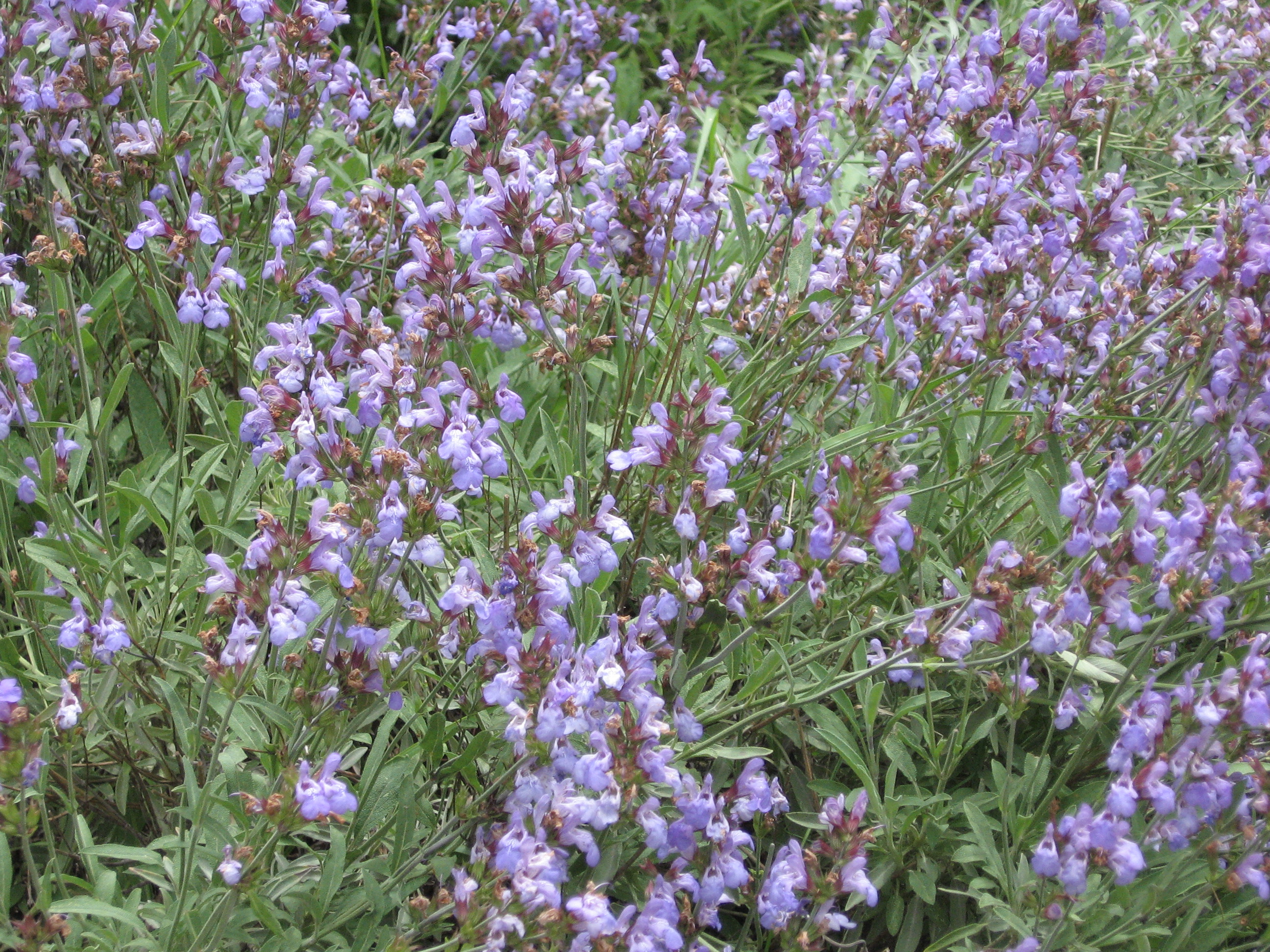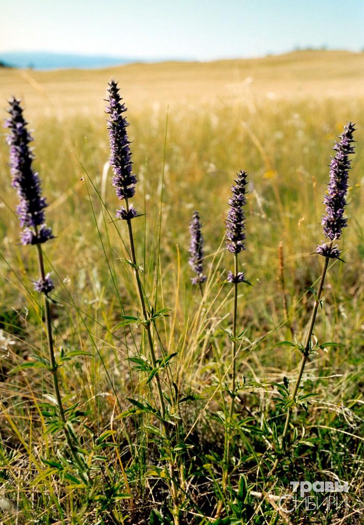 Другой популярный пряный многолетник — иссоп. Это растение представляет собой небольшие кусты с удлиненными листиками; оно хорошо переносит засушливые условия и холода, может достигать 70-сантиметровой высоты. Нижние веточки обладают зеленым окрасом и постепенно приобретают коричневый оттенок. Цветки иссопа — насыщенного синего цвета.