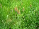 В конце весны растения выгоняют колосья розового цвета. Ржавопятнистая осока способна цвести и на солнце, и в тени.