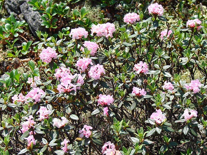Куст альпийской розы может вырастать до полутора метров.