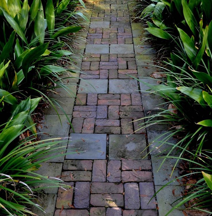 Брусчатка и тротуарная плитка. Благодаря большому ассортименту и разнообразию цветов тротуарной плитки можно выложить дорожку по схеме, чтобы в результате получить определенный рисунок или орнамент.
