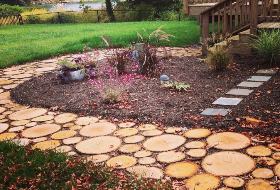 Для таких дорожек подходят как доски, так и спилы бревен.