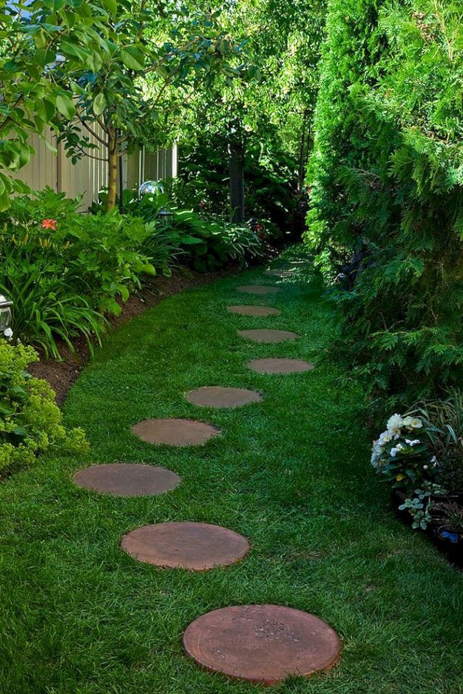 Если вам посчастливилось иметь большой сад с пышной лужайкой, убедитесь, что структура t теряется, используя ступеньки, чтобы создать чистую дорожку. Держите свои изогнутыми, чтобы разбить резкие линии от квадратных камней и других жестких ландшафтов вокруг. Кроме того, если вы держите свой участок рядом с бордюром или витриной с растениями, это гарантирует прекрасные визуальные эффекты, когда вы перешагиваете через свой.