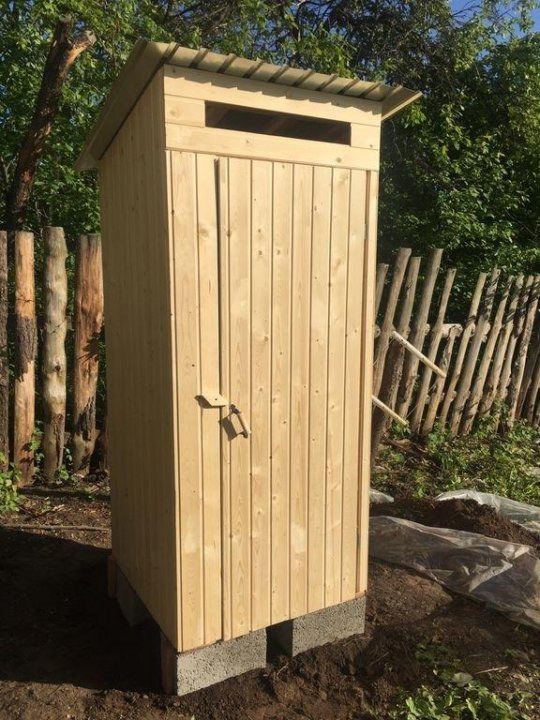 прямо над отверстием устанавливается деревянная кабина с дверью, внутри которой сооружается самостоятельно или монтируется готовый покупной стульчак.