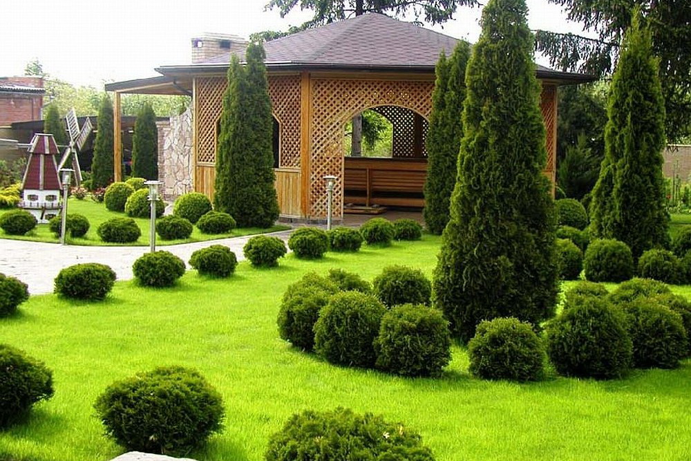 Шаровидные туи в дизайне участка