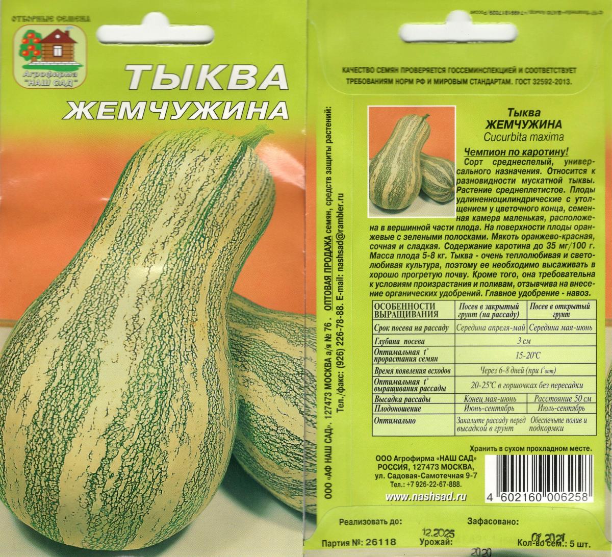 Обычно посадку производят в первой половине июня. Но собирают плоды недозрелыми, так как они не поспевают к сбору урожая в европейской части страны. Существует шесть разновидностей мускатной тыквы, но наиболее популярны плоды грушевидной формы.