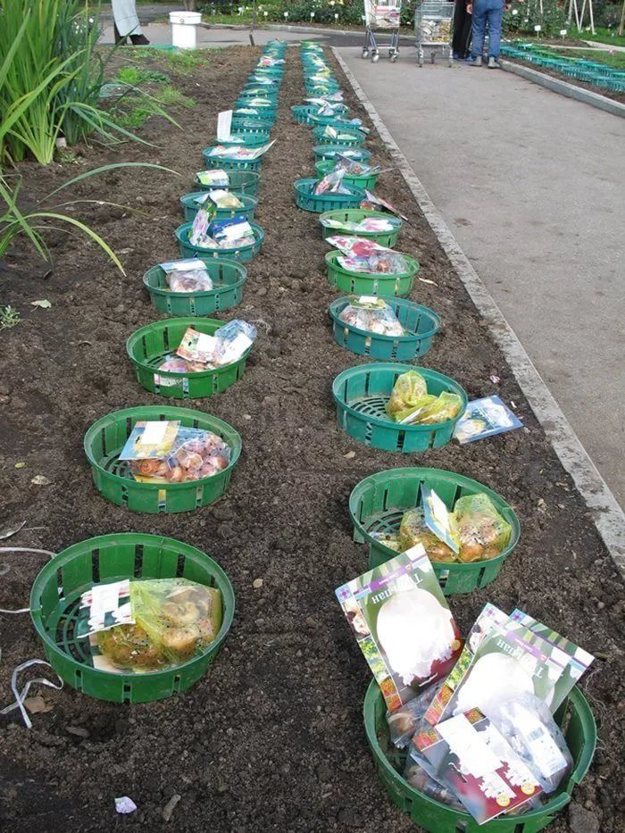 - крупные луковицы высаживайте в центре, мелкие — по краям. Так большие цветы не будут закрывать свет от более мелких;