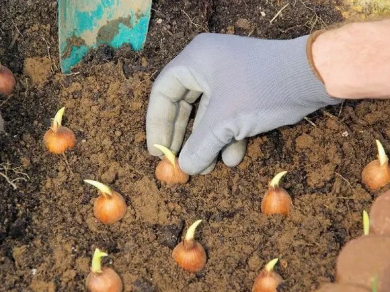 Поливают луковицы после посадки. Это поможет урегулировать почву в посадочном ложе, а также обеспечит необходимую влажность для луковиц, чтобы они начали укореняться. Луковицы, посаженные осенью, должны укорениться до наступления холодов. Избегайте чрезмерного полива во время посадки, так как это может привести к загниванию луковиц.