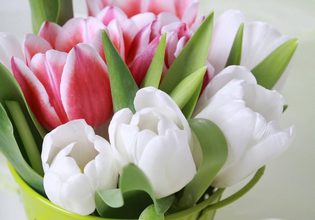 Букеты, которые собирают из тюльпанов одинаковой цветовой гаммы невероятно гармонично и эффектно смотрятся. Однако не стоит верить предрассудкам и ограничивать себя в выборе. Растения разной цветовой гаммы в одной композиции – безграничный ансамбль ярких красок, который дарит хорошее настроение.