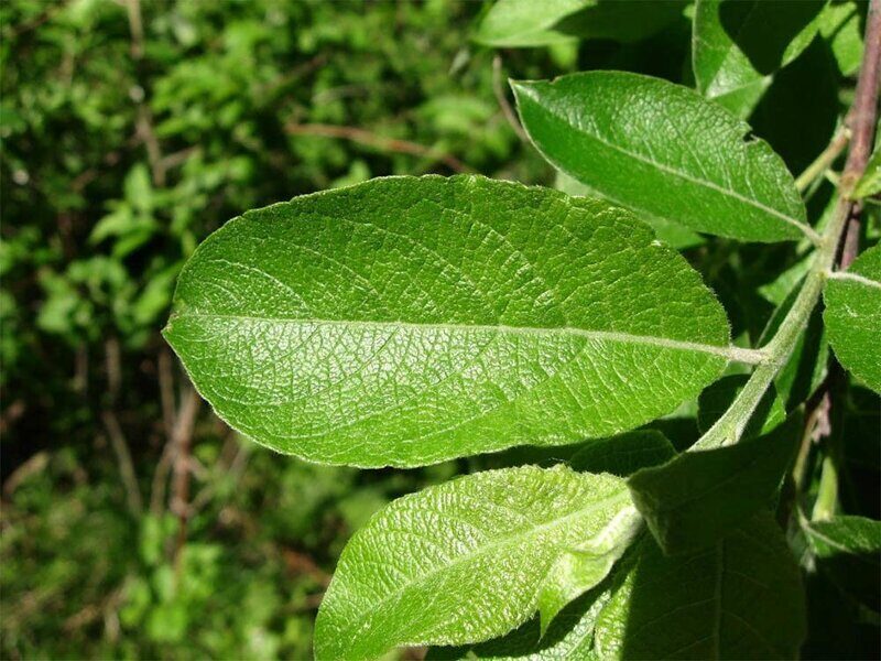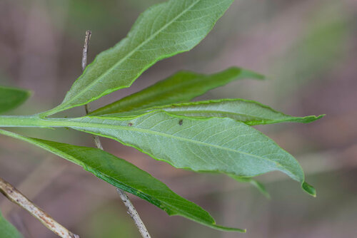 Расположение листьев или игл, размер, форма и текстура:Чередующиеся листья имеют форму от эллиптической до продолговатой, размером от 2 до 4 дюймов в длину и от 1 до 2 дюймов в ширину. Листья имеют цельные или слегка зубчатые края. Сверху они темно-сине-зеленые, а снизу от бледно-белых.