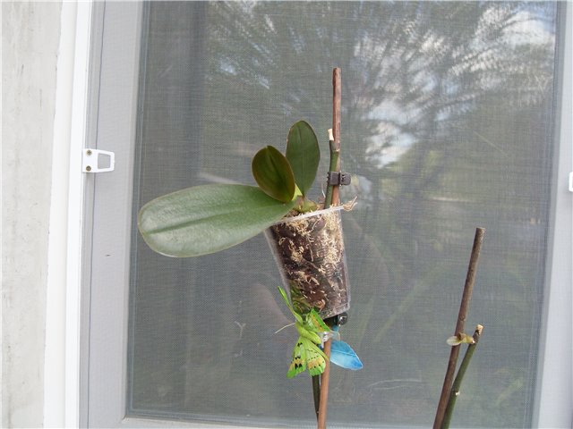 А так выглядит на фото детка (отросток) орхидеи.