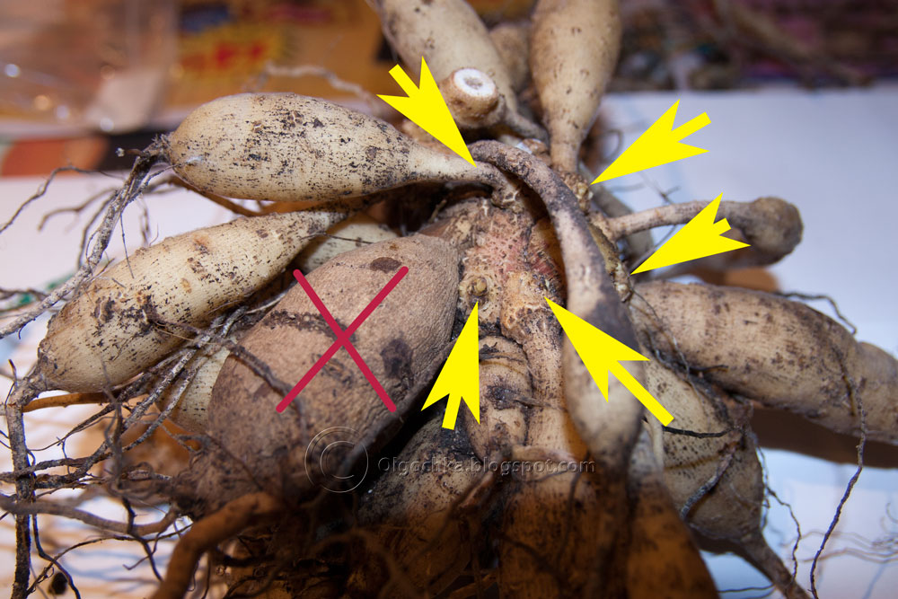 Будьте осторожны при обращении с комками, стараясь не проколоть клубни и не повредить их шейки, так как это может привести к гниению при хранении.