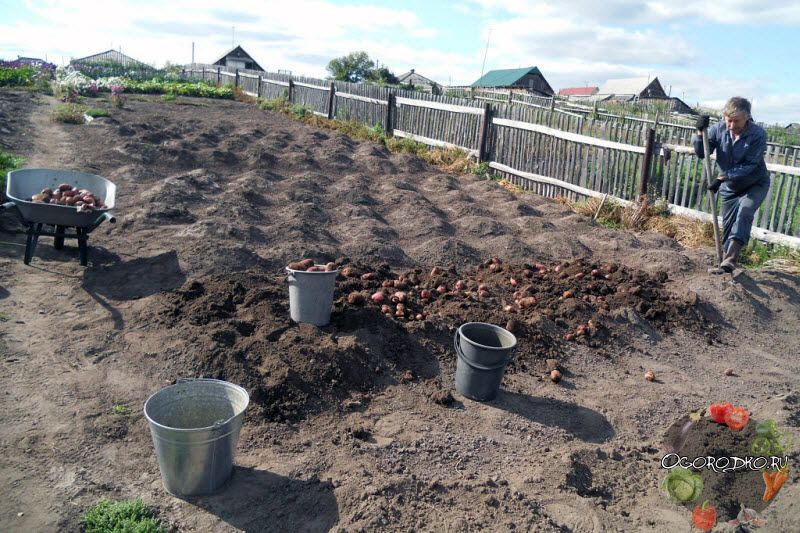 С ней не очень-то согласен очень активный в беседах любителей собирать урожаи на своих участках Ф.Х. Халилов: «Я думаю, когда ботва засохла — уже опоздали, фитофтора, которая была на ботве, с осенними дождями смылась в землю и достала клубни. Большая вероятность загнивания клубней в погребе. Моё мнение: копать надо, когда клубни не очищаются от довольно сильного потирания пальцами, а ботва уже начинает желтеть (или пожелтела), но далеко не засохла. Копать надо в сухую погоду. Советов несколько — решение за хозяином картофельного участка. А когда хочется поесть молодую картошку, тогда не копают, а под кустами швыряют только руками, выбирают попавшиеся крупные клубни и кусты обратно аккуратно засыпают. Оставшиеся мелкие клубни растут до настоящей копки».