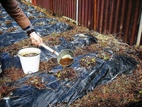 Спустя десять дней удобрение будет готово. Прежде чем наносить на почву, его надо разбавить в пропорции литр удобрения на 10л или 50л воды. Удобрение большей концентрации подходит для деревьев и кустов, а слабым составом поливают овощи.