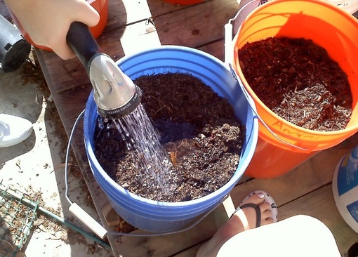 - Получившийся раствор слить и полить им растения, а осадок еще раз разбавить водой.