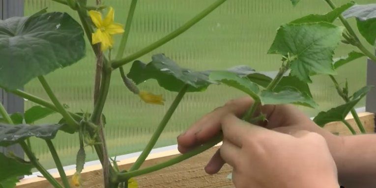 На всём протяжении роста плети за ней следят. Если оставить всё на самотёк, то теплица довольно быстро превратится в джунгли. Как следствие, повысится влажность и понизится освещение, что приведёт к снижению количества завязей.