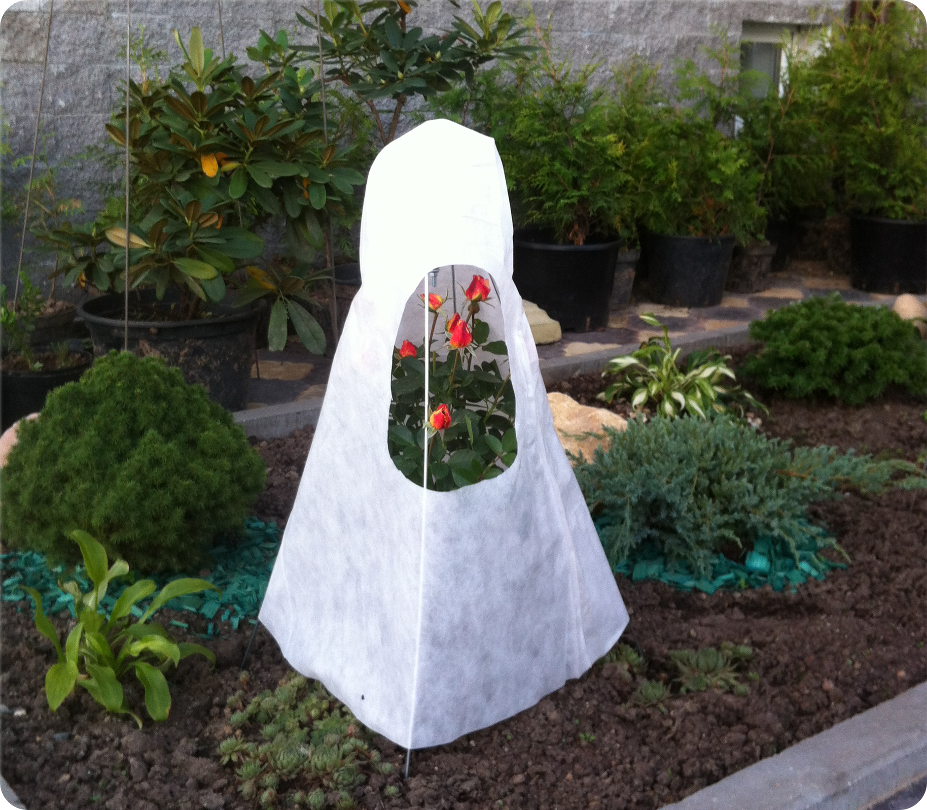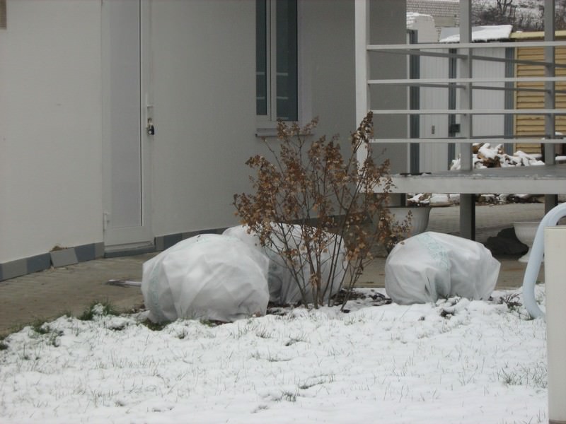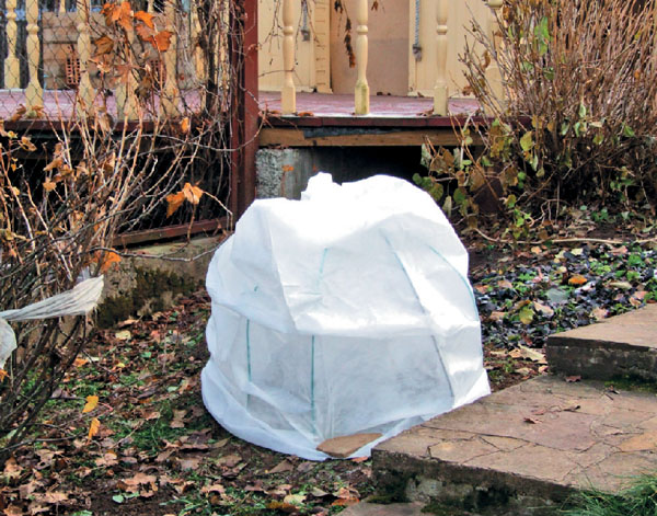 При таком утеплении растение может сначала подопреть, а при наступлении сильных морозов замёрзнуть. Не надо туго стягивать растение, важно чтобы воздух циркулировал между ветками.
