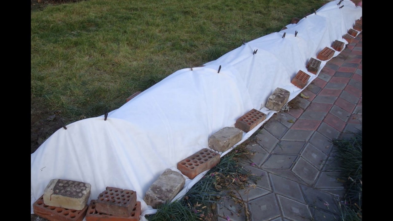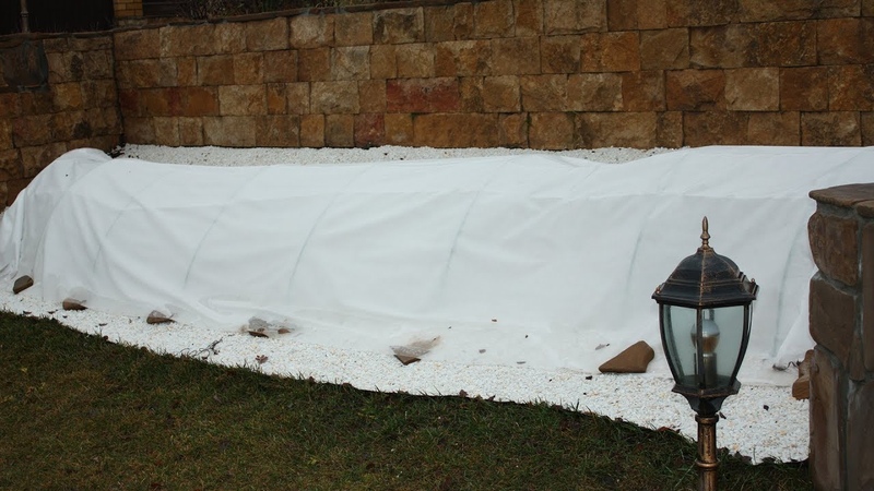 - Установите каркас заранее, пока почва не промерзла. С наступлением холодов останется лишь обтянуть сооружение спанбондом.