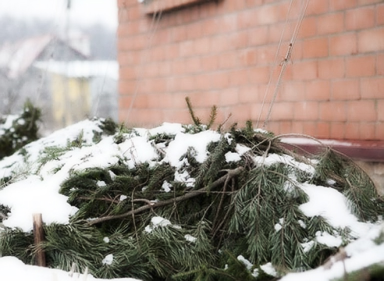 Если нет мешка, подойдёт просто материал для укрытия. Ветви точно так же осторожно связывают, чтобы не травмировать их. Потом можно обернуть материалом и закрепить его, используя верёвки или проволоку. Снег с укрытия надо периодически стряхивать