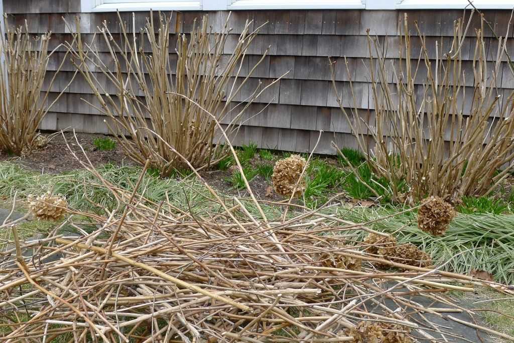 Крупнолистную и дуболистную гортензию, которые цветут на побегах прошлого года, следует обрезать вскоре после завершения цветения.