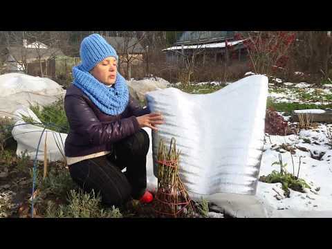 Небольшие молодые кустики тоже связывают, укладывают на еловый лапник и прижимают камнем или кирпичами. Затем растения засыпают сухим листом и укрывают лутрасилом (марки 30 – с дырочками).