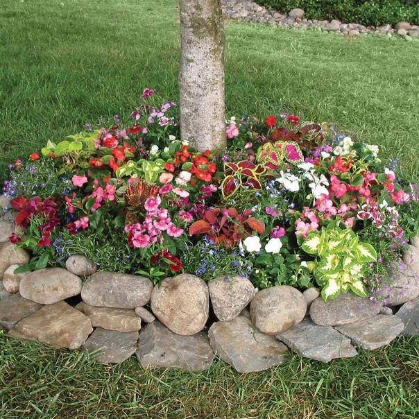 Добавление растений, окружающих деревья, — отличный способ добавить текстуру и освежить ваш сад.Убедитесь, что цветы, которые вы выберете, теневыносливы, например, Алиссум, Клеоме и Фуксия. Окружите их камнями, чтобы создать контраст между цветником и травой.