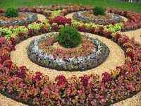 Регулярные клумбы характеризует строгий геометрический узор и простые формы.