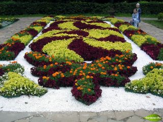 Используют цветы либо одного колера, либо разноколерные, разделяемые бордюром. Клумбы состоящие из однолетних растений должны отличаться не сложным рисунком.