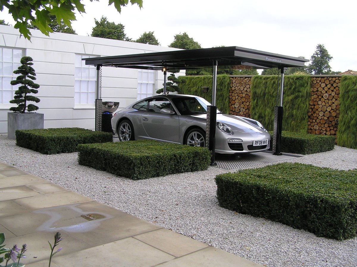 Также рекомендуется рассмотреть возможность обустройства навеса, особенно если речь идёт о стоянке у дома. Это существенно повысит комфорт пользования автомобилем при неблагоприятных погодных условиях, позволит осуществлять его ремонт и обслуживание в дождь.