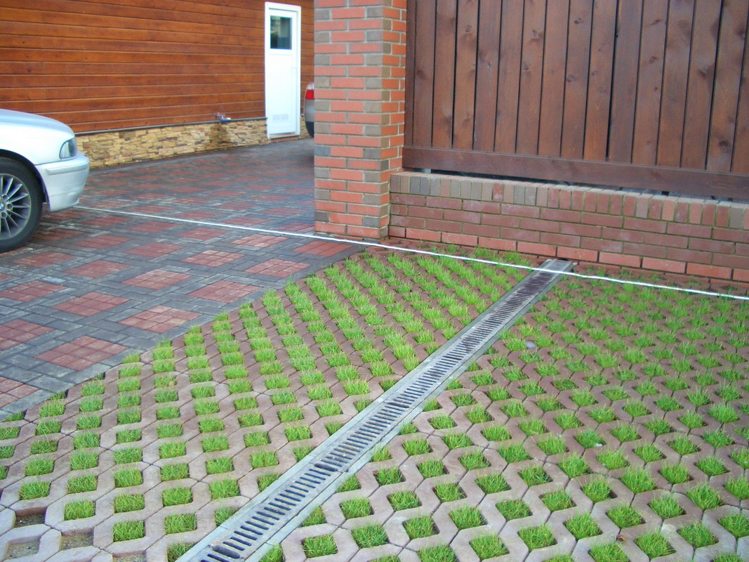 Толщина этого покрытия должна составлять до 5 см. Мелкий камень хорошо пропускает влагу, обеспечивает достаточное уплотнение покрытия. Поверхность парковки прикатывается. - Укладка дренажной системы. С её помощью будет отводиться лишняя влага. Можно взять обычные пластиковые или бетонные лотки.