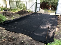 - Укладка геотекстиля. Он предотвратит прорастание сорной травы.