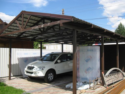 Если вы добираетесь на дачу не на автобусах и электричках, а на собственной машине, то рано или поздно вам надоест ставить ее просто возле крыльца дома. Вы задумаетесь о том, что пора бы построить для своего «железного коня» стационарную парковку, защищающую его во время вашего дачного отдыха от жарких солнечных лучей и атмосферных осадков. Самой легкой и быстрой в исполнении является стоянка для машины на даче в виде площадки с навесом. Давайте поговорим о том, как построить подобную стоянку и подберем материалы для нее.