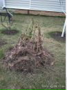 Приучать растение к горизонтальному положению необходимо постепенно, через некоторое время перемещая скобы-фиксаторы от центра стволов к их основанию. Побеги следует утеплить лапником, а поверх него – спанбондом. Сверху надо насыпать сухие опилки или торф, а потом снова лапник.