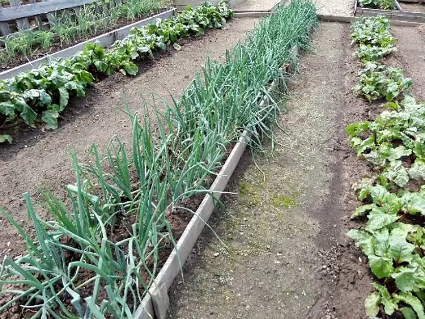 - в 4 или 3 ряда, соблюдая шахматный порядок — чеснок, лук, свекла, разные салаты, морковь, редис и др.