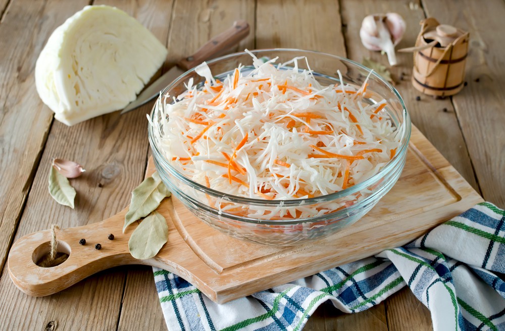 В квашенную капусту по классической рецептуре добавляют натертую морковку, а еще можно: