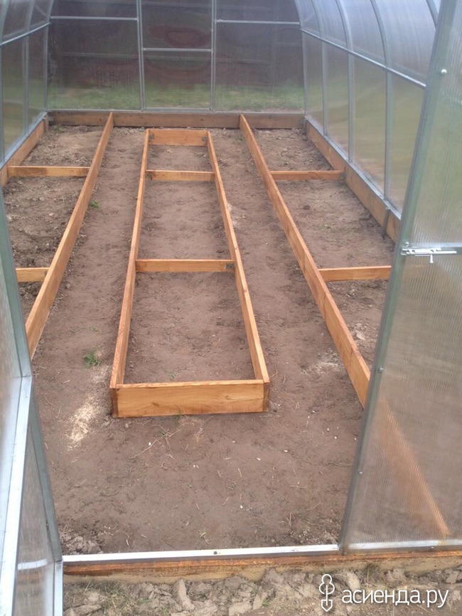 Помните! Грядки в теплице нужно расположить так, чтобы солнечные лучи попадали на все растения в первой половине дня. Послеполуденное освещение заметно замедляет биологические процессы.