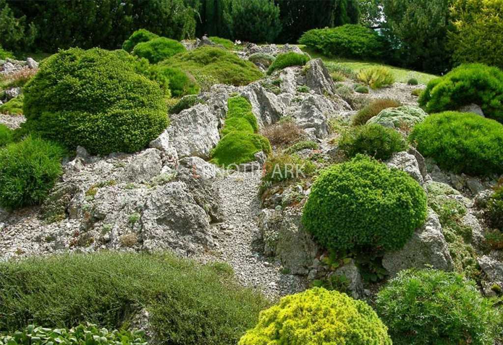Интересным решением будет расположение нескольких крупных экземпляров, между которыми проходят извилистые тропинки, образуя своеобразный лабиринт. Созерцать композицию полностью можно будет с балкона, а внизу наслаждаться неспешной прогулкой.