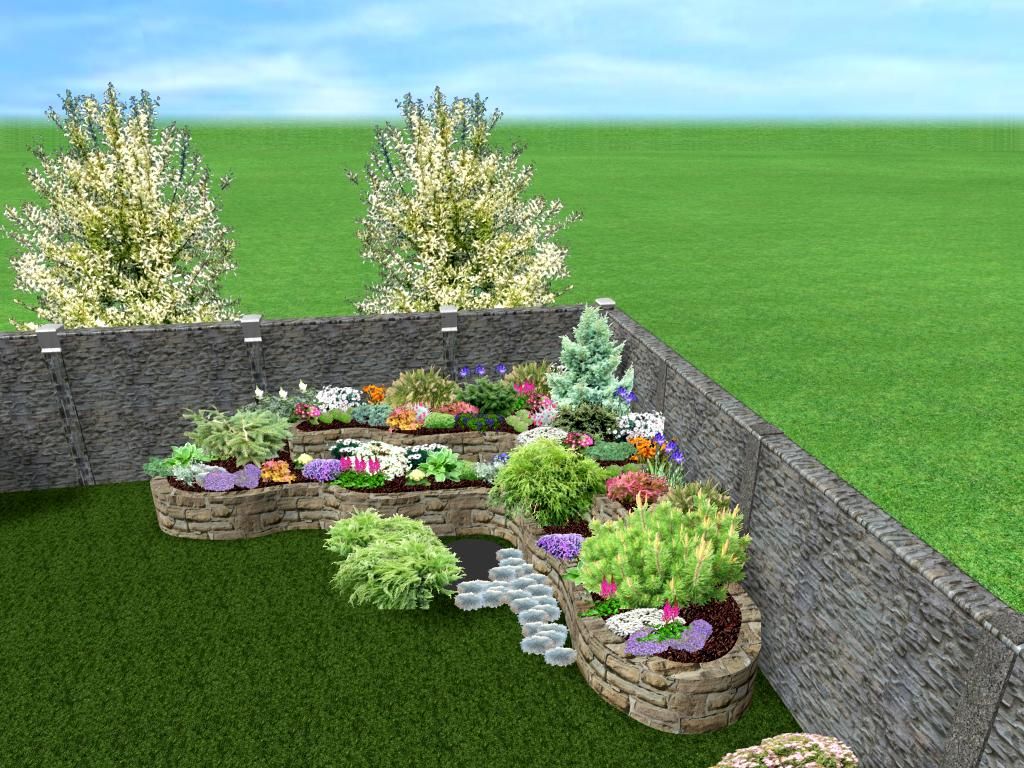 При наличии рельефа со склонами, можно оформить альпийскую горку или террасированную клумбу .