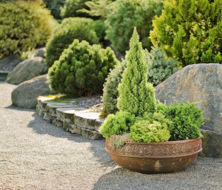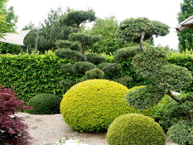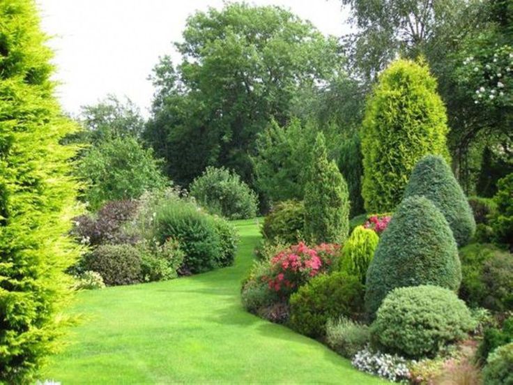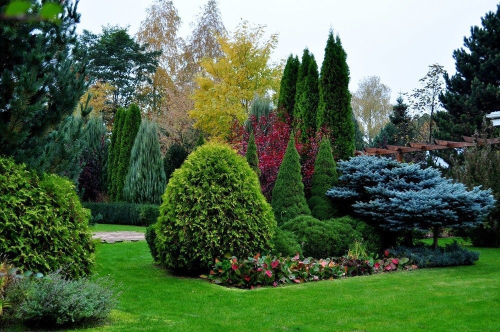 Самые эффектные садовые композиции основаны на гармоничном сочетании различных форм вечнозеленых растений