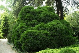 Карликовые сорта кипариса распространены в комнатном цветоводстве. - Пихта. Дерево имеет густую, конусовидную крону, длинную, изогнутую, ярко-зеленую хвою и красивые шишки фиолетового цвета. Дерево влаголюбиво и в засушливый период ему требуется обильный полив. Кроме обычных сортов, у пихты есть миниатюрные формы, которые прекрасно приживаются на небольшой территории, могут выдержать затенение. Пихту высаживают в живые изгороди, групповые композиции, оформляют дорожки, аллеи.