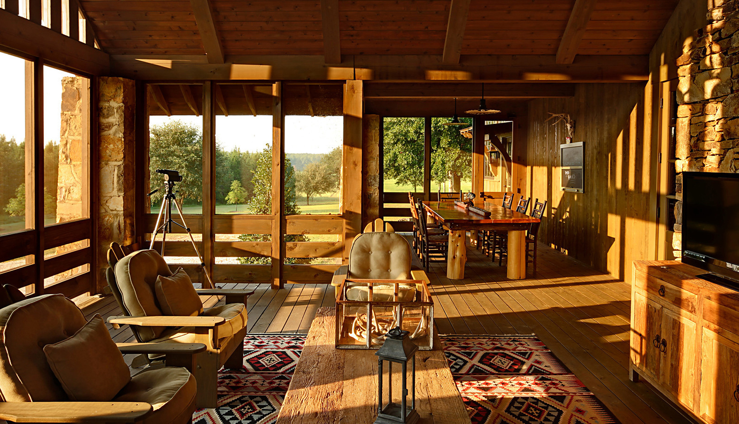 67. Плетеная мебель для крыльца в горной хижине со старинным ящиком для стола