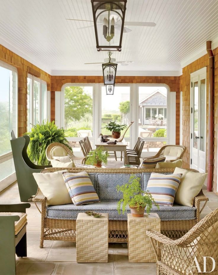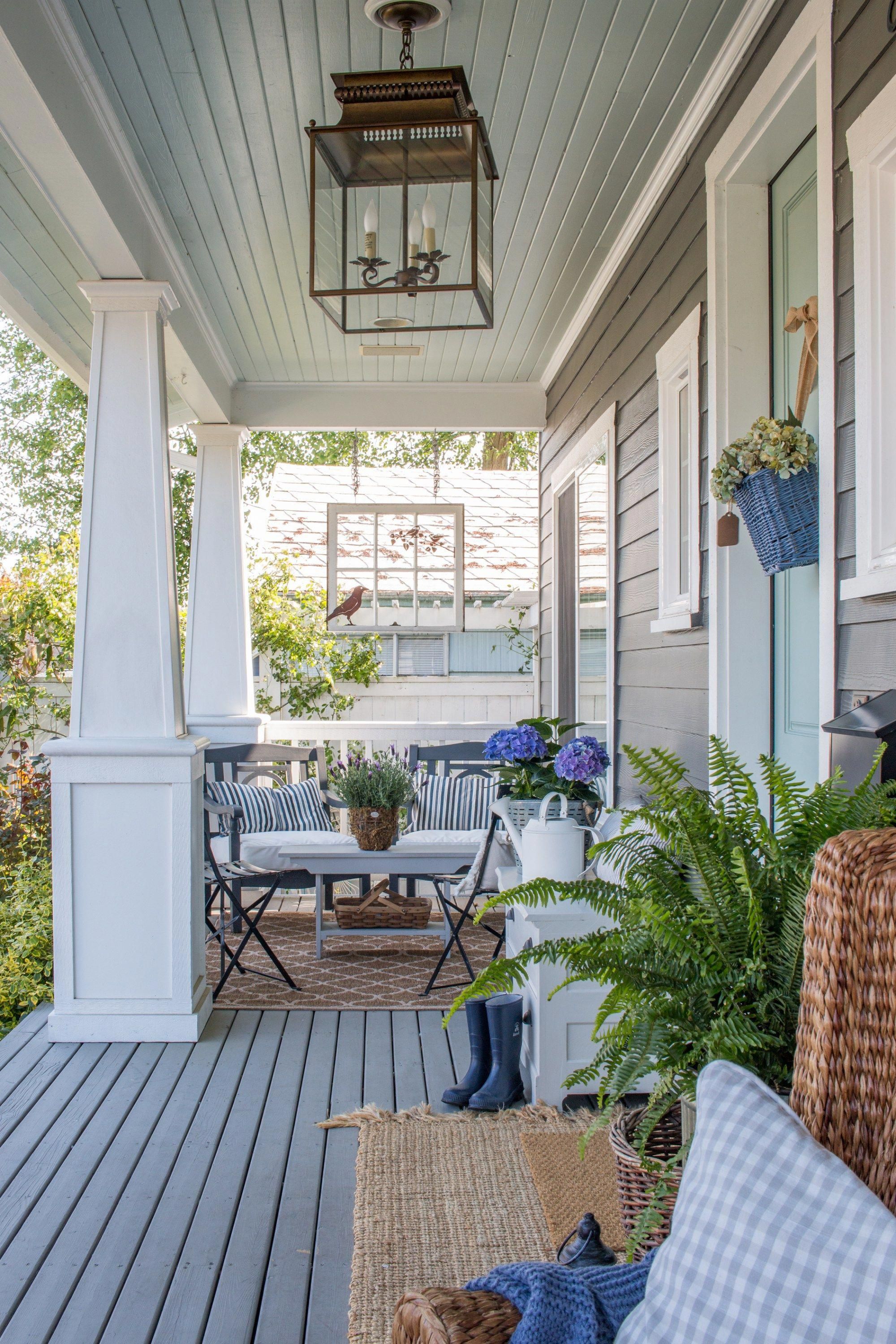 Источник: laurieannas.blogspot.com Классная палитра белого дерева и зеленых папоротников превращает крыльцо фермерского дома в летний оазис.