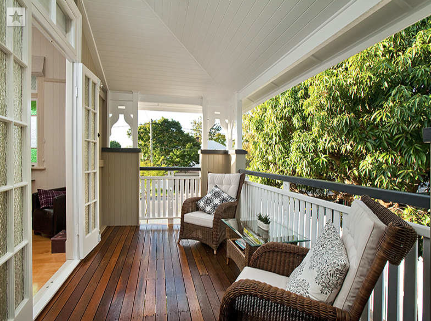 Размещая мебель на веранде, оставляйте побольше пространства для свободного перемещения