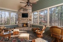 Природные материалы летних веранд легко комбинируются между собой, что значительно облегчает задачу дизайна интерьера со стилистической точки зрения. Так, в деревянной террасе гармонично смотрится камин, да еще и с каменной облицовкой. Данный элемент не только внесет особый колорит в интерьер, но и обогреет веранду в холодную погоду, а все домашние смогут сполна насладиться бесконечной магией пламени и потрескиванием горящих дров.