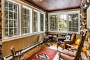Изюминка интерьера веранды – деревянное роскошное панно с оригинальным узором, который сложен из пяти различных пород дерева.