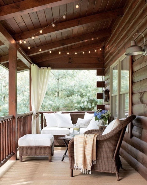 Источник: rustyhinge.blogspot.comУглы для разговоров и уютные сиденья позволяют максимально использовать защищенное пространство на открытом воздухе и приглашают людей собраться вместе.Здесь старинный деревянный ящик служит журнальным столиком, а мягкие одеяла готовы согреть прохладный вечер.