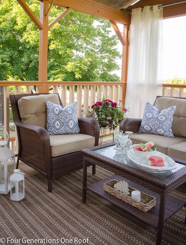 В патио также может быть установлена мебель, обеспечивающая дополнительные возможности для сидения. Патио часто включают в себя растения, мебель, места для костра, столешницы или грили, чтобы вы могли наслаждаться жизнью на свежем воздухе круглый год.