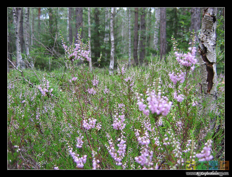 Лесная подстилка Цветущие цветы вереска Утренняя дымка Молодая береза Пихта Стоковое фото ©alex.stemmer 442119618Изображения