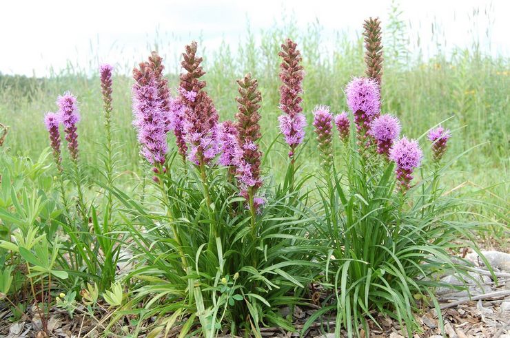 Астры (новоанглийские, высокие белые и гладкие голубые), мелисса дикая, бергамот, эхинацея (черноглазая и трехлопастная), вербена голубая, голубоглазая трава, сорняк прибрежный, наперстянка бородатая, молочай , New York Ironweed, горная мята Вирджиния, дикая земляника, голубика малая, трава свинолистная, лабазник розовый и белый, роза виргинская