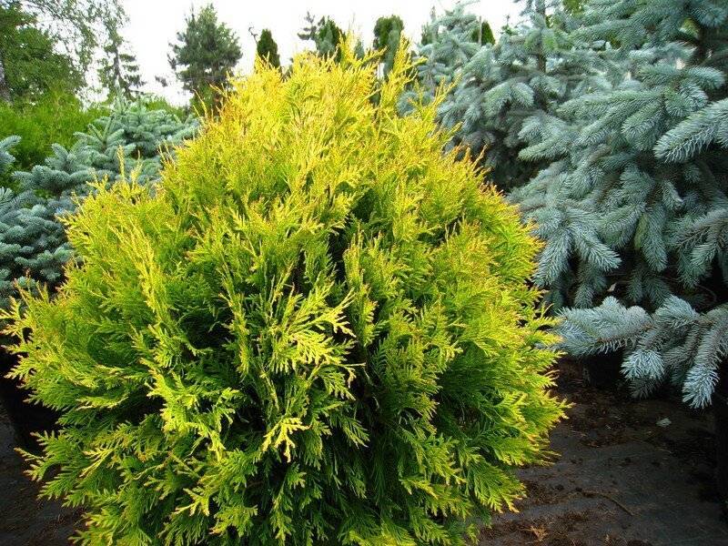 Летом окрас растения меняется на желто-зеленый. Предпочитает солнечные места, поскольку в тени становится просто зеленого цвета. Растет медленно. - Сорт Cold Star отличается мягкой, ярко-золотистой чешуйчатой или игольчатой хвоей. В высоту вырастет до 1 м, а в ширину – до 2 м. Морозостоек, к почве нетребователен. В тени растет плохо.